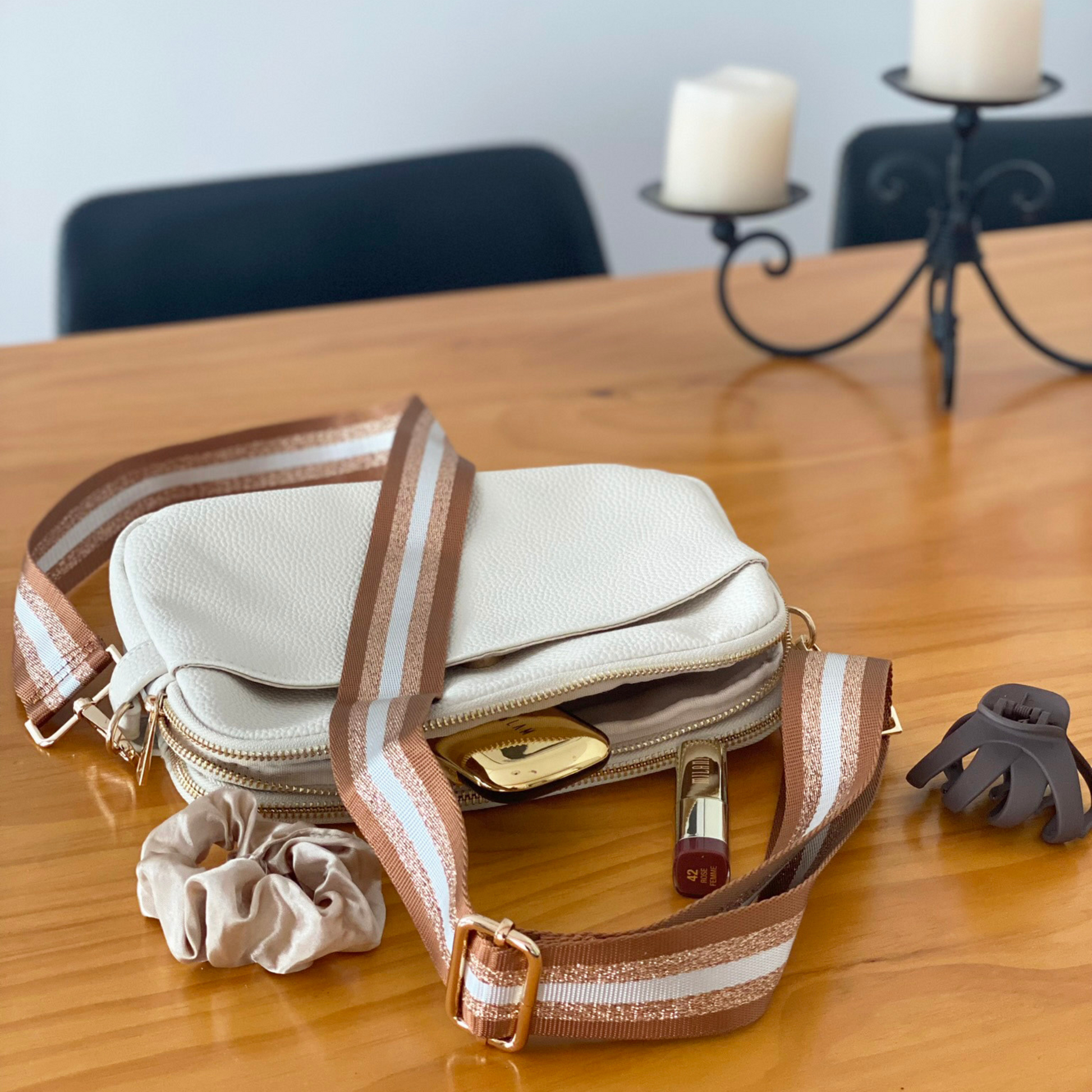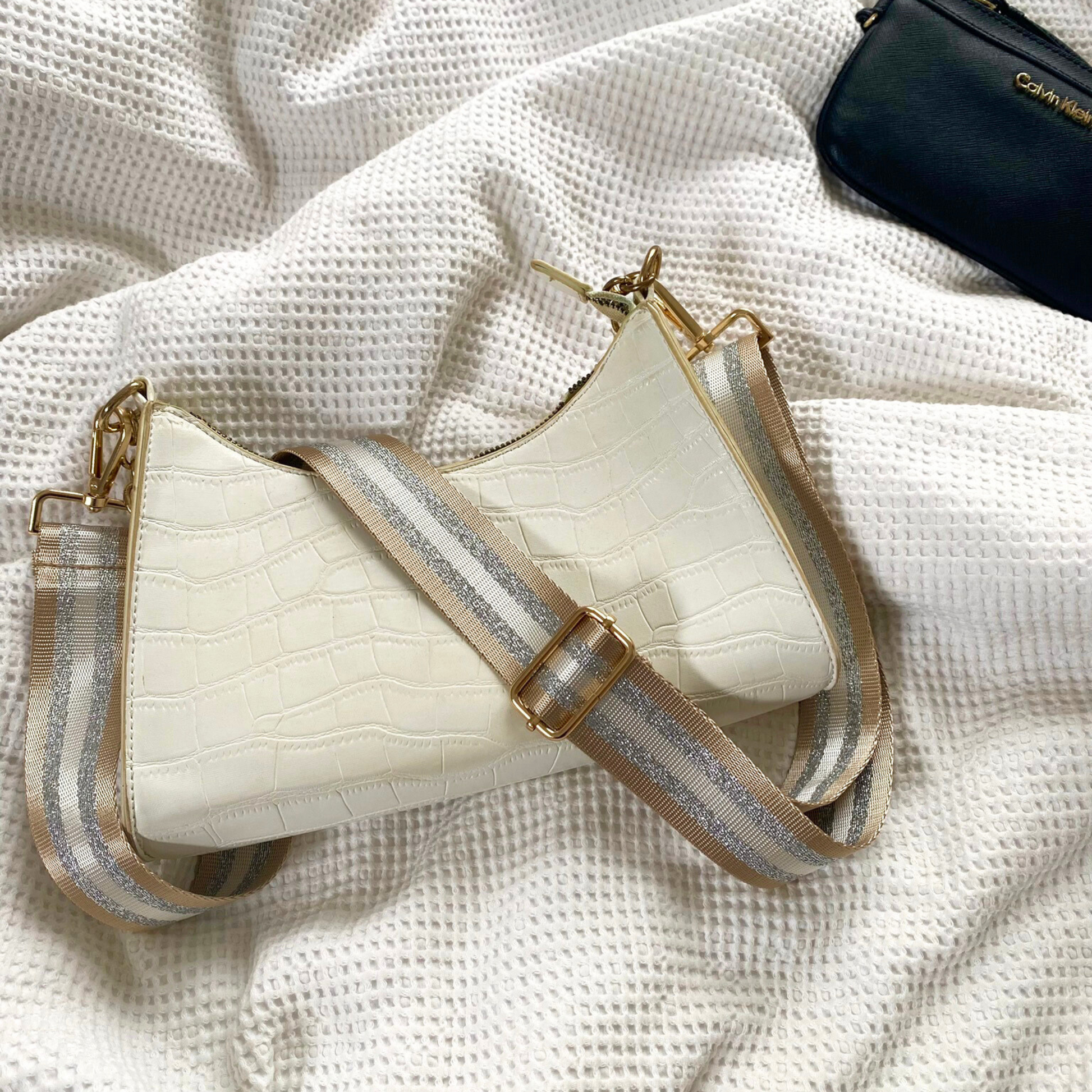 Strike the perfect balance between style and functionality with this chic handbag strap. Upgrade your crossbody bag and add a pop of personality with a double-sided stripe pattern. The adjustable length ensures a comfortable fit for various carrying preferences.